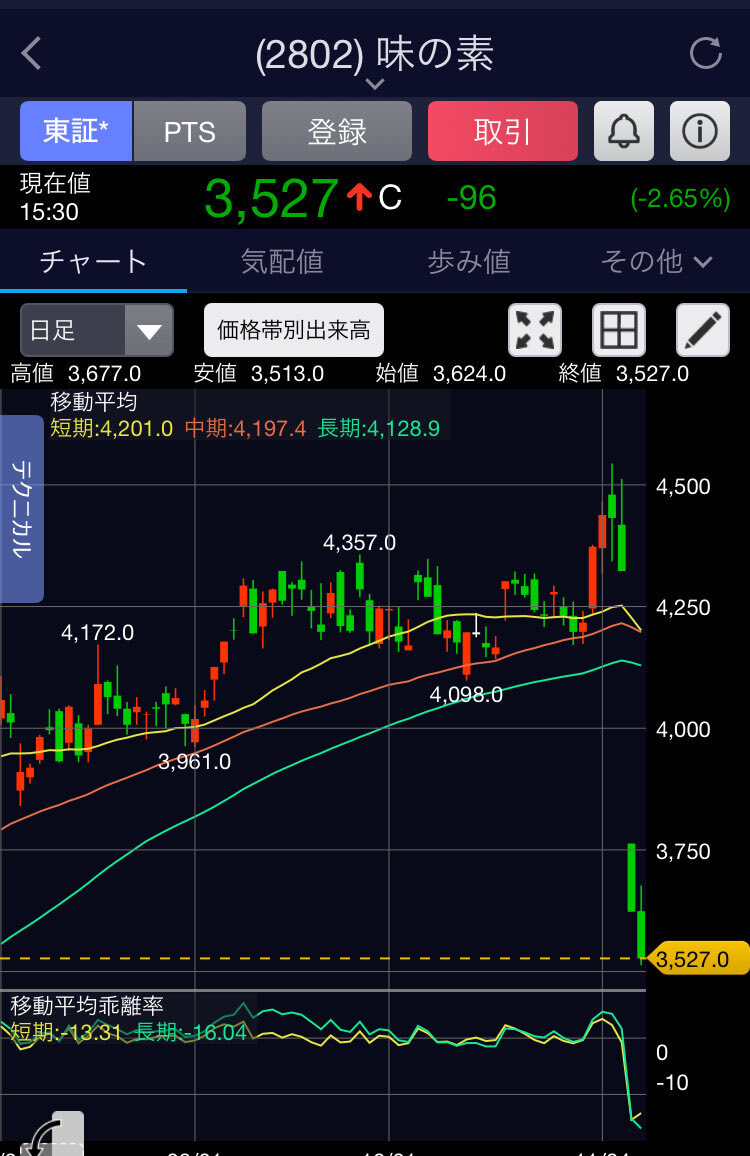 今日の1株投資 ヤクルト本社🍹 味の素🥟 ポーラオルビス💄 ノジマ📺 壱番屋🍛 オークワ🥦 MS&AD🗒️ ミラースHD🏠 NTT☎️ 各1株 味の素が25日移動平均線乖離率が-10%を大きく下回っています。さすがに下げすぎだと思いますので新規買いしました☺️ pic.x.com/8MuT7VuyS6