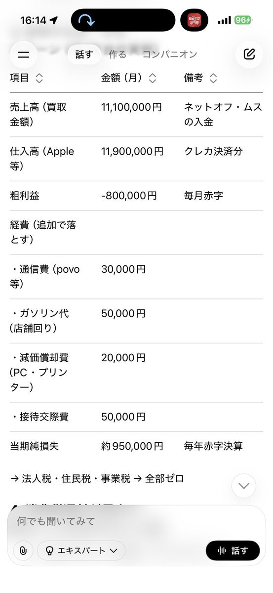4. 消費税還付が最大の旨味(これを知らないと損) • 仕入れ時に支払った消費税:約119万円/月 • 売上時に受け取った消費税:約101万円/月 → 差額18万円/月 → 国から還付金として戻ってくる → 年間で約216万円戻ってくる(これが実質的な利益) 5. ポイント・マイルはどうする? •