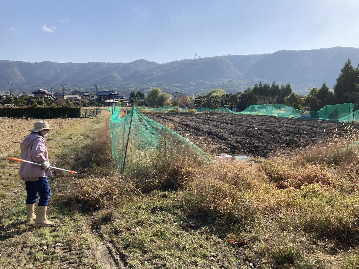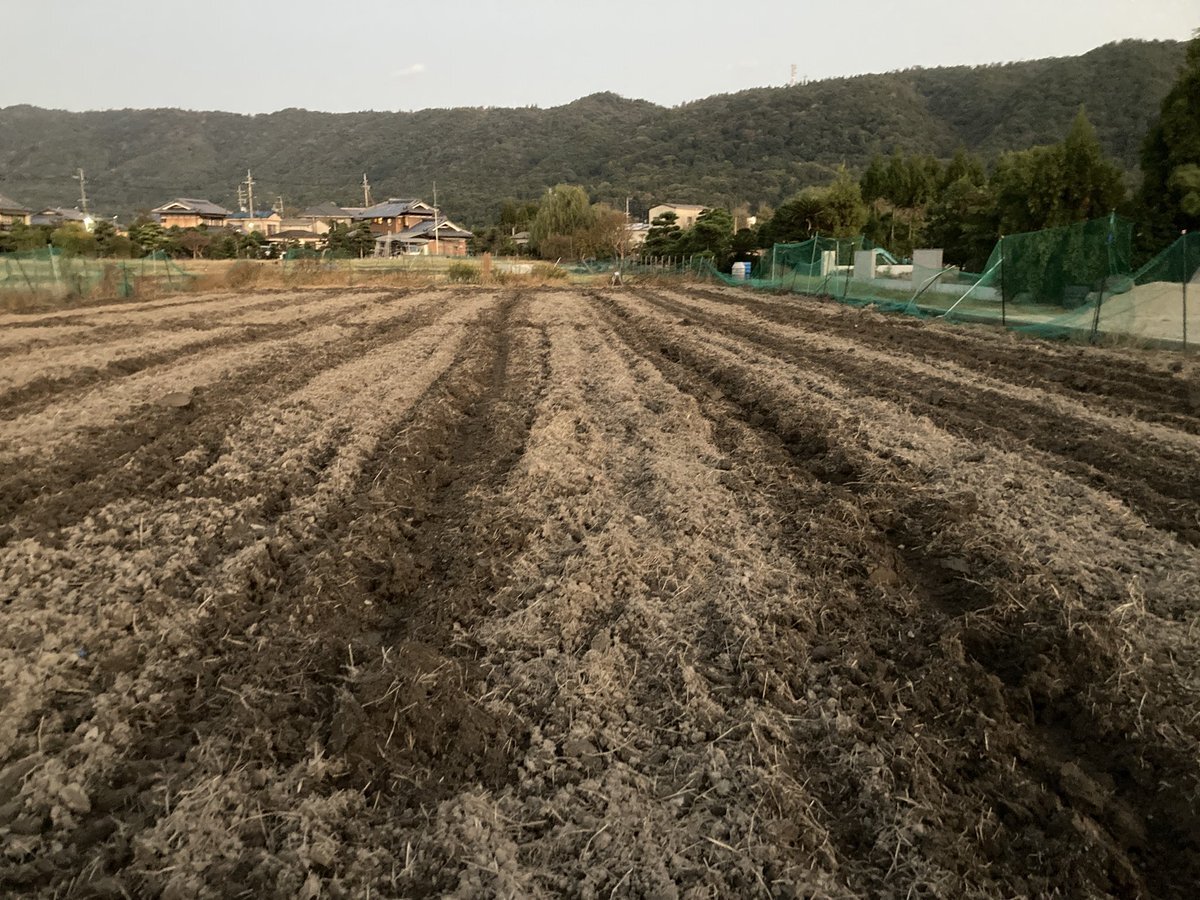閉店後16時頃〜1時間程で畝幅の修正。もっと平らにし表面もほぐしたいけど今はこれが精一杯💦 明日、種を撒きつつネットを張り直すのが目標。並行して作業が出来れば良いのだが。 種は15㎏程あった。 明日は9時から作業。見学•手伝い大歓迎。場所は池田の丸亀の裏!「種まきごんべえ」も使えるよ! pic.x.com/BEQvFoftiI