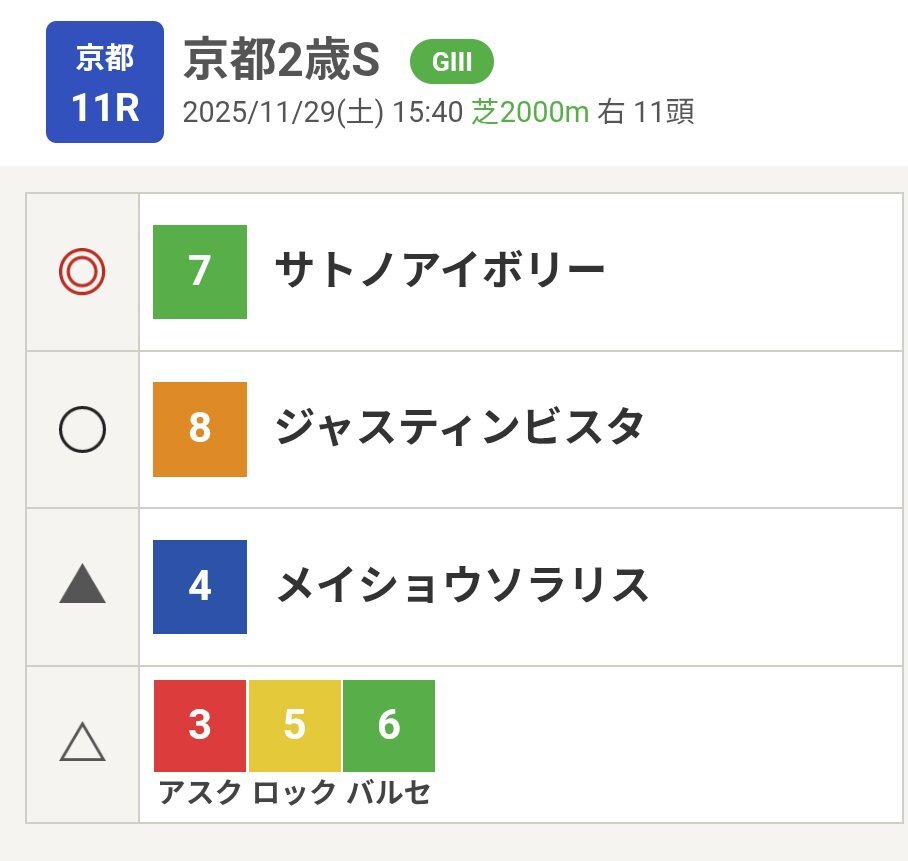 京都2歳S point Ranking🤔 1位◎11ウィナーズナイン 2位○10ゴーイントゥスカイ 3位▲7サトノアイボリー 4位△9フリーガー 5位☆6バルセシート 6位★2カラペルソナ 難しい2歳戦🤔そして出世レース🤔 早熟系のエピファネイア産駒に新種牡馬、コントレイル産駒に注目😊 特にゴーイントゥスカイに期待🤭