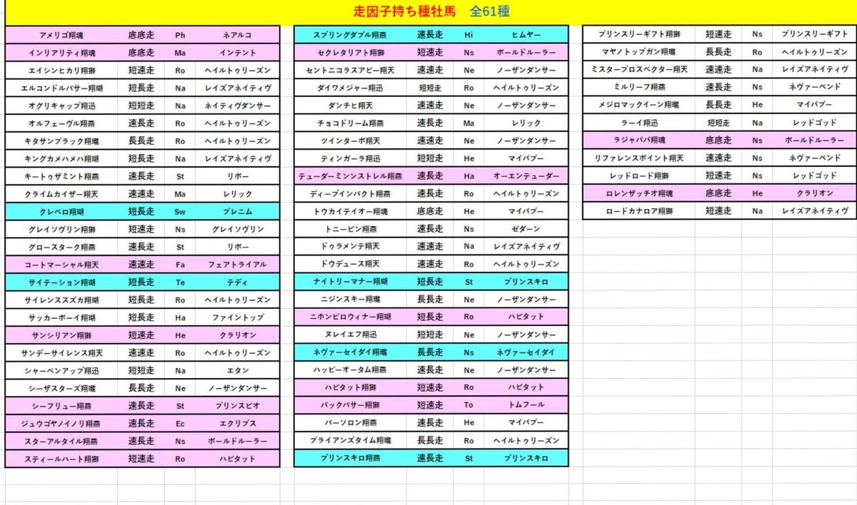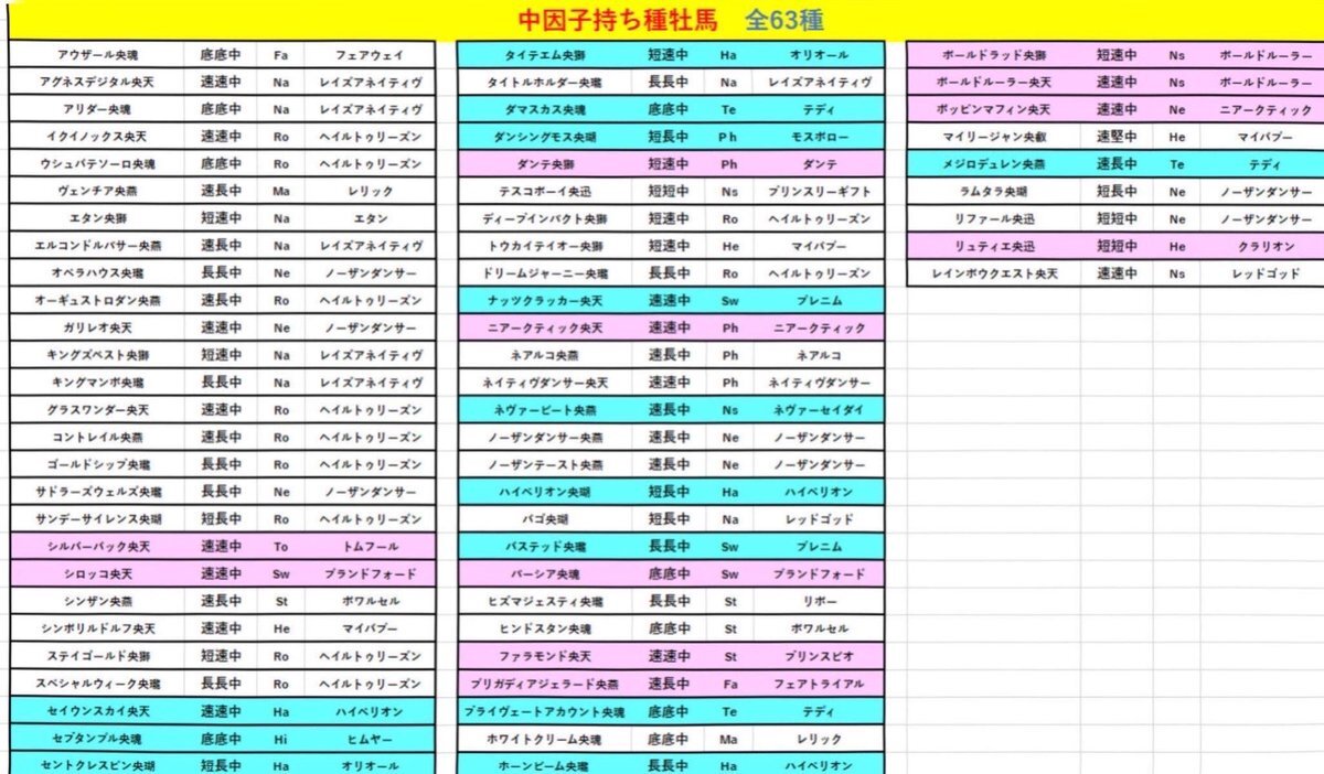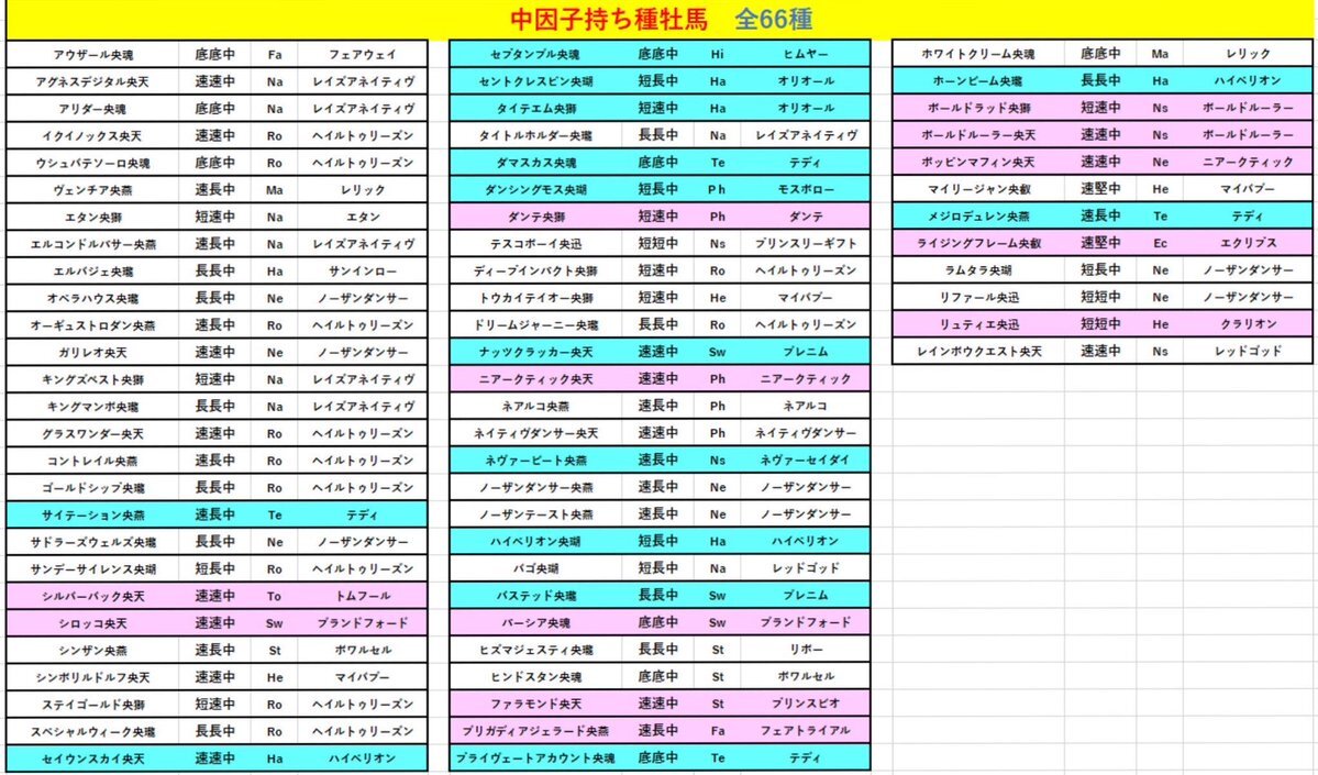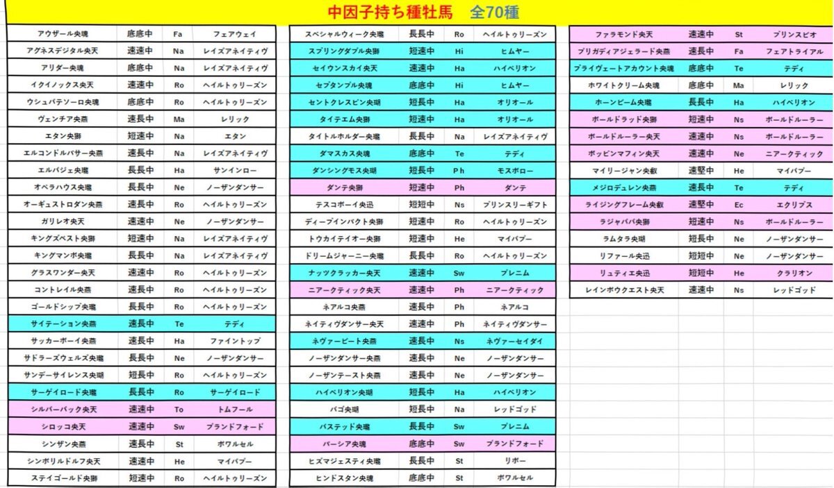 招き石があと2周分で底をつく為、なかなか次の配合(周回)に踏み切れずぼーっとする時間が増えてきた為、誰も必要としてないかもしれない一覧の定期更新🙄 ※アタシは配合考える前に眺めとるのでヨシ結構眺めとります 天性因子持ち種牡馬一覧 走因子持ち種牡馬一覧 中因子持ち種牡馬一覧 pic.x.com/bef067H8kl
