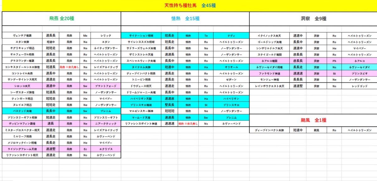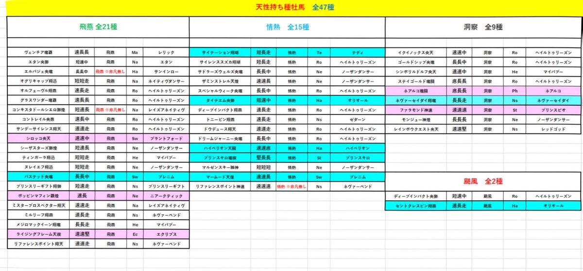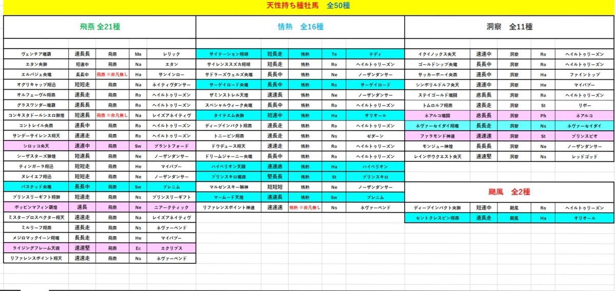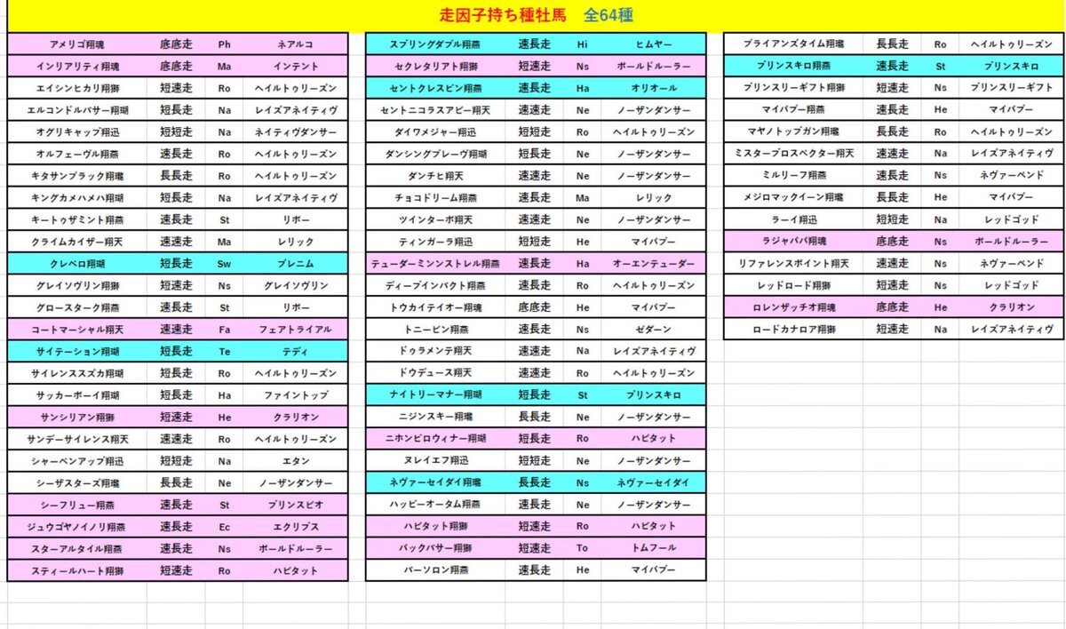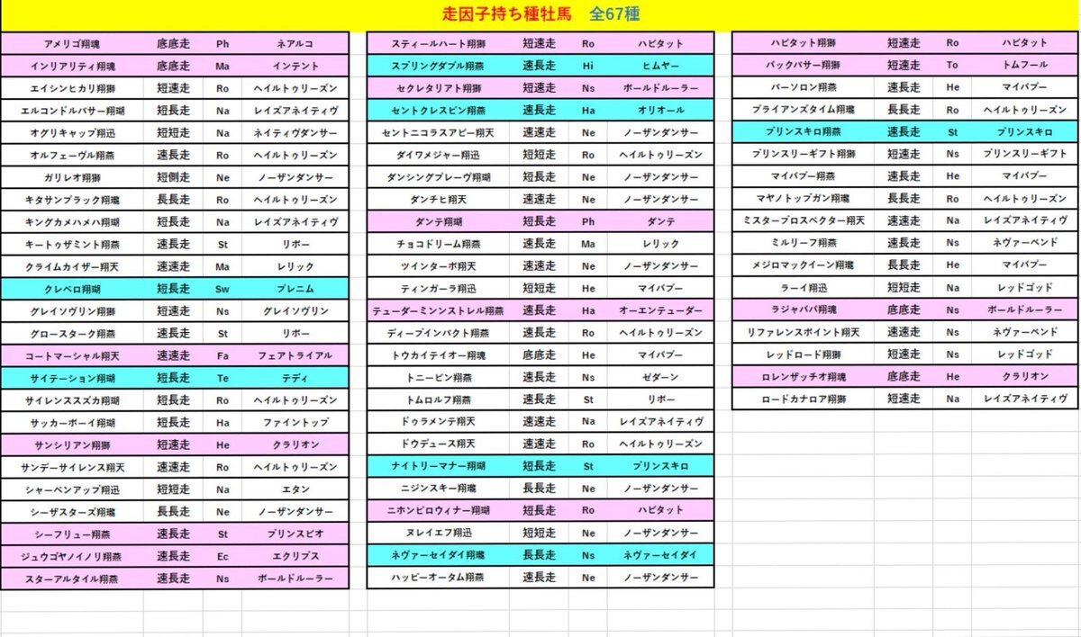 招き石があと2周分で底をつく為、なかなか次の配合(周回)に踏み切れずぼーっとする時間が増えてきた為、誰も必要としてないかもしれない一覧の定期更新🙄 ※アタシは配合考える前に眺めとるのでヨシ結構眺めとります 天性因子持ち種牡馬一覧 走因子持ち種牡馬一覧 中因子持ち種牡馬一覧 pic.x.com/bef067H8kl