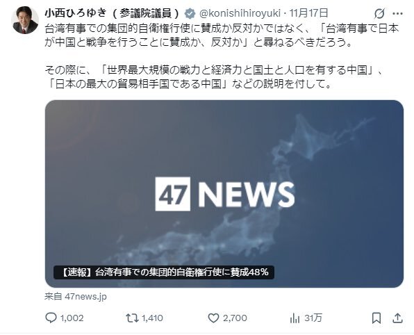 民主主義は、政府に対する不断の監視があってこそ。 岡田克也議員のまっとうな質疑に首を傾げる批判をした読売社説を、外務副大臣がわざわざリポスト。 驚きを禁じ得ません。 権力とメディアが結託し、行政監視を非難すれば、民主主義は揺らぎます。 x.com/ayano_kunimits…