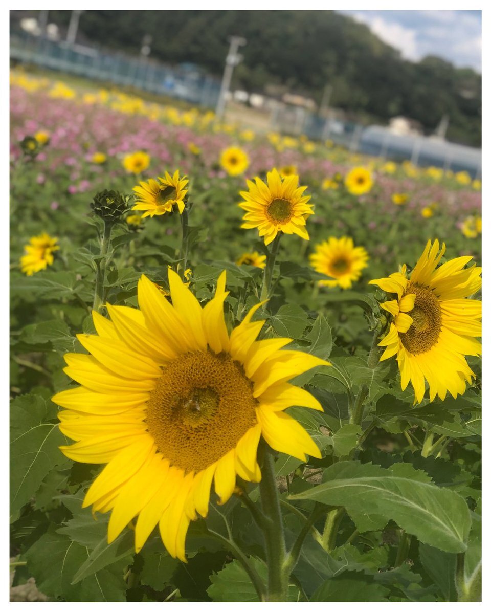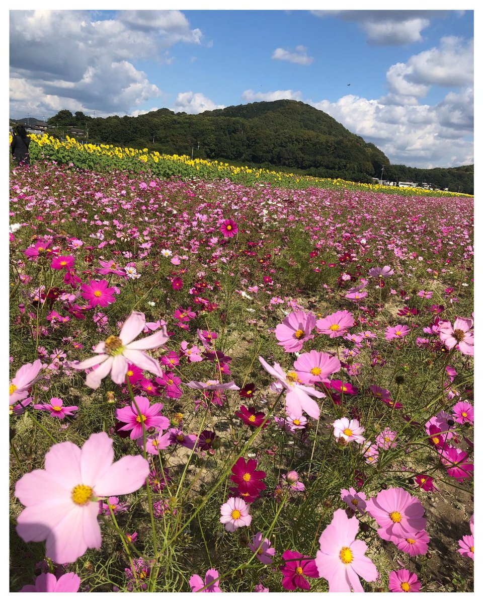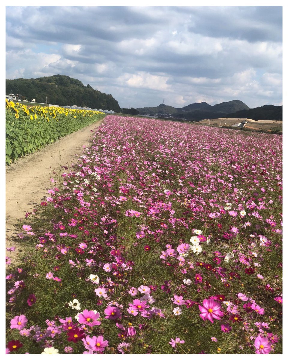 🌸道の駅 笠岡ベイファーム🌻 今、コスモスが満開で見ごろを迎えています✨ さらに「クリアスマイル」という品種のひまわりも同時に咲いていて ピンクと黄色の花々が織りなす絶景が広がっています💐 秋の空の下、コスモスとひまわりの夢のコラボをぜひお楽しみください🌈 #一光化学 #バーユ #馬油 pic.x.com/WiD9Hbxtw3