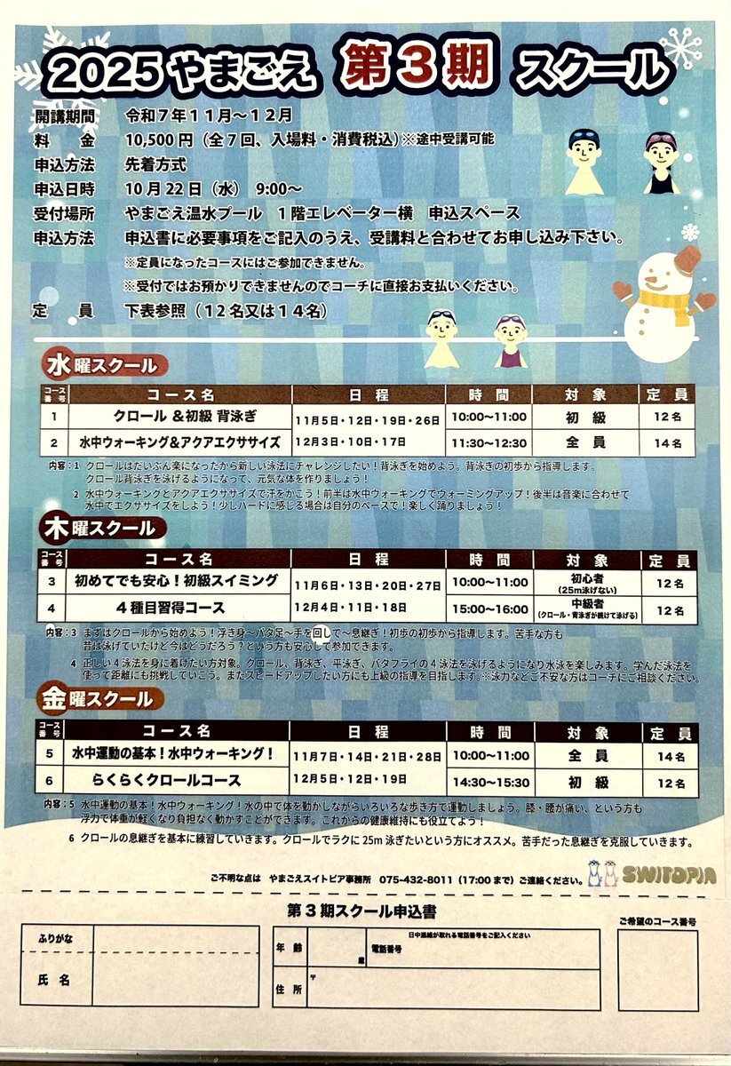 スクール開催!! 2025やまごえ第3期スクール参加者募集中です!✨ 水中ウォーキング・アクアエクササイズなど簡単なものから、初級スイミング・クロール・背泳ぎ・4種目習得コースなど本格的なものまで揃えてあります!!👌 先着順なのでお早めに!!👟 #スクール #プール pic.x.com/hrHh2yUK3z