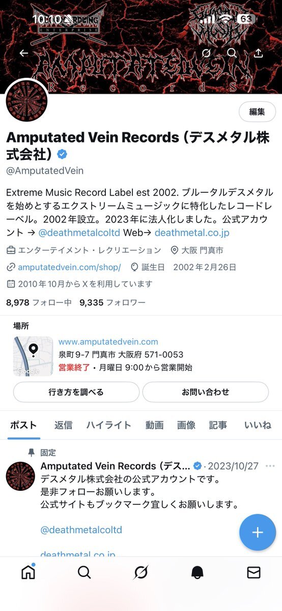 今回の一件でフォロワーさんが200人くらい増えました。フォローいただきありがとうございます。 改めて自己紹介させていただきますと、プロフィールにもあります通り2002年に設立したアンダーグラウンド特化型レコードレーベルです。2023年に法人化し第3期目を迎えました。 pic.x.com/MfEduF39Om x.com/amputatedvein/…
