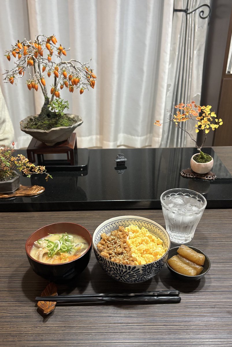 今日は簡単晩御飯⋆⸜(* ॑꒳ ॑* )⸝ 2色そぼろ丼 具だくさん豚汁 こんにゃくの甘辛煮 #晩御飯 #おうちごはん こんにゃく 豚汁に使ったけど 半端に残ったのでダシしみしみに pic.x.com/KmAn4a2Py2