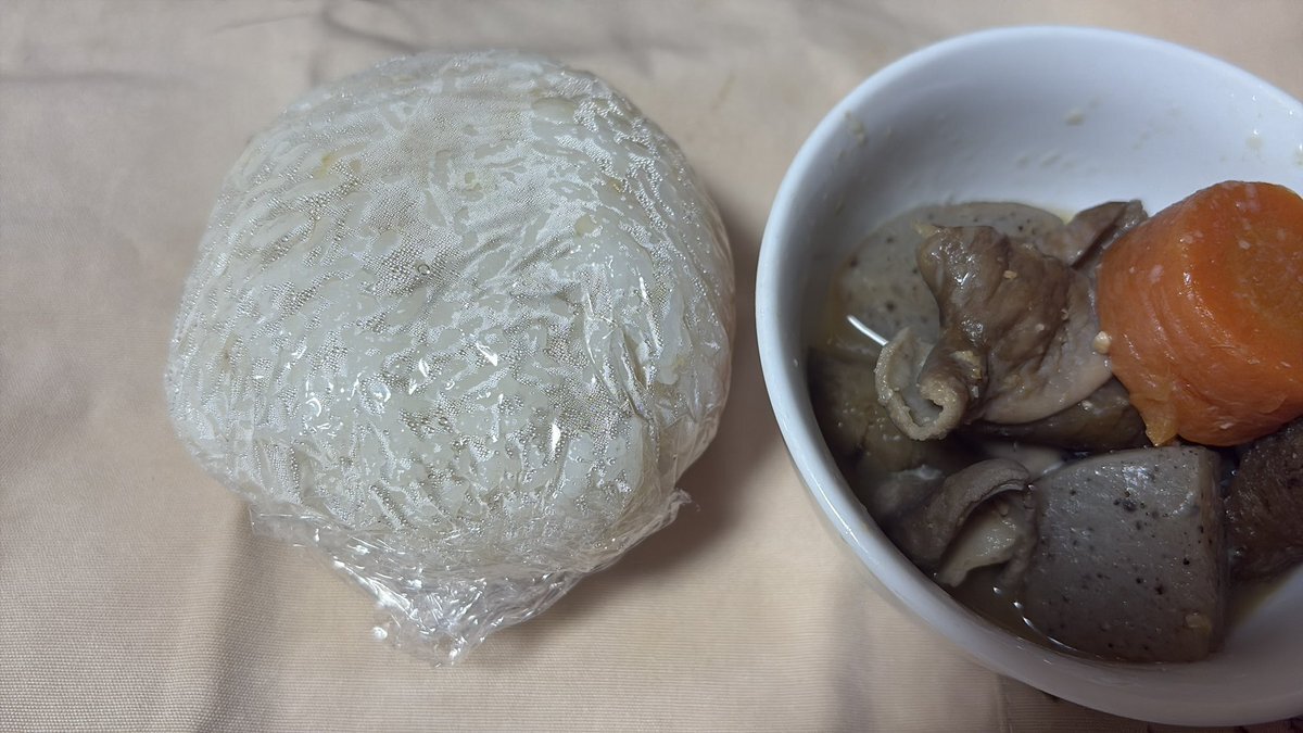 #OnigiriAction ForJapan の存在をいまさっき知る。 あーなんてこったい毎日握ってんのに というわけで自分の晩御飯を握りました。もつ煮込みの作り置きで簡単晩御飯😋 pic.x.com/0WkWdtAPZ5