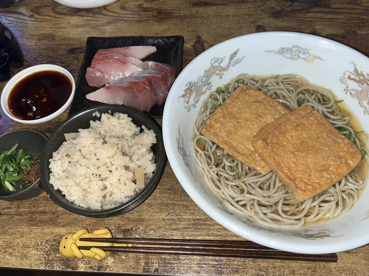 今日は山椒の実と牛肉の炊き込みご飯にしたから 蕎麦と刺身で簡単晩御飯 pic.x.com/g79W4EKtgj