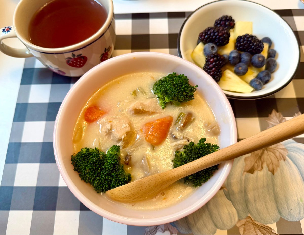 おはこんばんは🌈 今日、明日と職場にフォトグラファーがきて、生徒全員の個人写真(スターのブロマイドみたいなかんじ?)とクラス写真撮影会で皆すごいドレスアップです 私は週末から風邪なのかアレルギーなのか、声が枯れているので、昨日作っておいたシチューで簡単晩御飯 pic.x.com/VixI6E2pJ7
