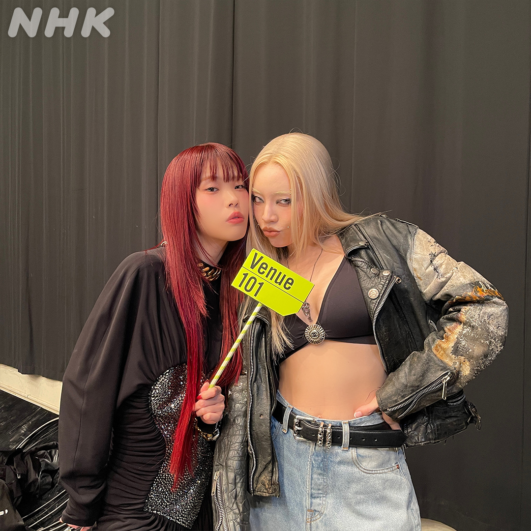 ❤紅白歌合戦🤍 出場歌手発表会見の舞台裏で激写📸 💖ちゃんみな×HANA🌹 #HANA プロデューサーである #ちゃんみな との仲良しショット💞 2組の #紅白歌合戦 のステージもお楽しみに🎤 #Venue101 #NHK紅白 詳しくはこちら👇 nhk.or.jp/kouhaku/ pic.x.com/K2a1bnrbBc