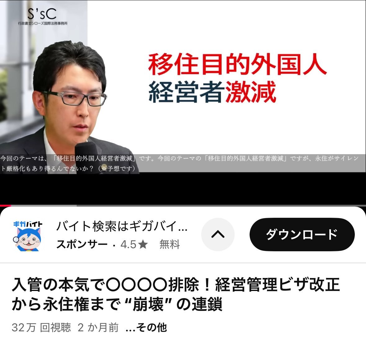 youtu.be/8a9ebVnhoeg?si… この「経営管理ビザ」マジで欠陥制度だなぁ。中国人 71% って普通じゃねぇよ。日本語読み書きが要件に入ってすらないのに 5 年で永住権やぞ... 片山さん早急に制度見直してくれ。