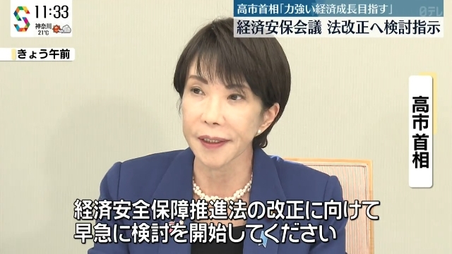 【経済安保法の見直し指示】政府は、経済安全保障推進会議を総理大臣官邸で開き、高市早苗総理大臣は施行から3年が経過した経済安全保障推進法の見直し着手を指示。 ・半導体などサプライチェーン強化 ・基幹インフラに医療分野を追加し、サイバー攻撃への対策強化 pic.x.com/GTDRkwNAaW