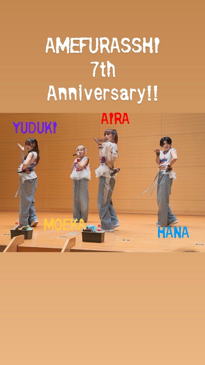 結成7周年おめでとうございます!進化していく姿に目が離せない、ここれからの活動楽しみにしています、次のワンマンライブはいつかな〜? #AMEFURASSHI #愛来 #市川優月 #小島はな #鈴木萌花 pic.x.com/dRpIsJ2rUa