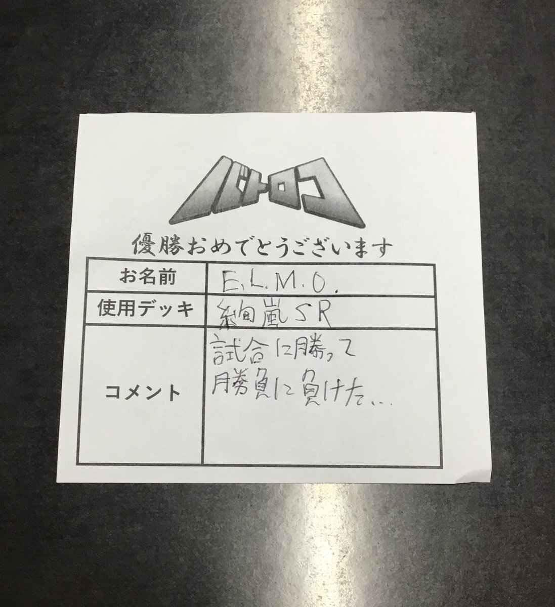 【大会情報】 17時開催 #遊戯王 ランキングデュエル  優勝者は E.L.M.O. さんです! 優勝おめでとうございます♪ 使用デッキ 絢嵐SR 「試合に勝って勝負に負けた…」とコメントいただきました♪ 本日はご参加いただきありがとうございました♪ #バトロコ #川越 pic.x.com/dIm0egqDg4