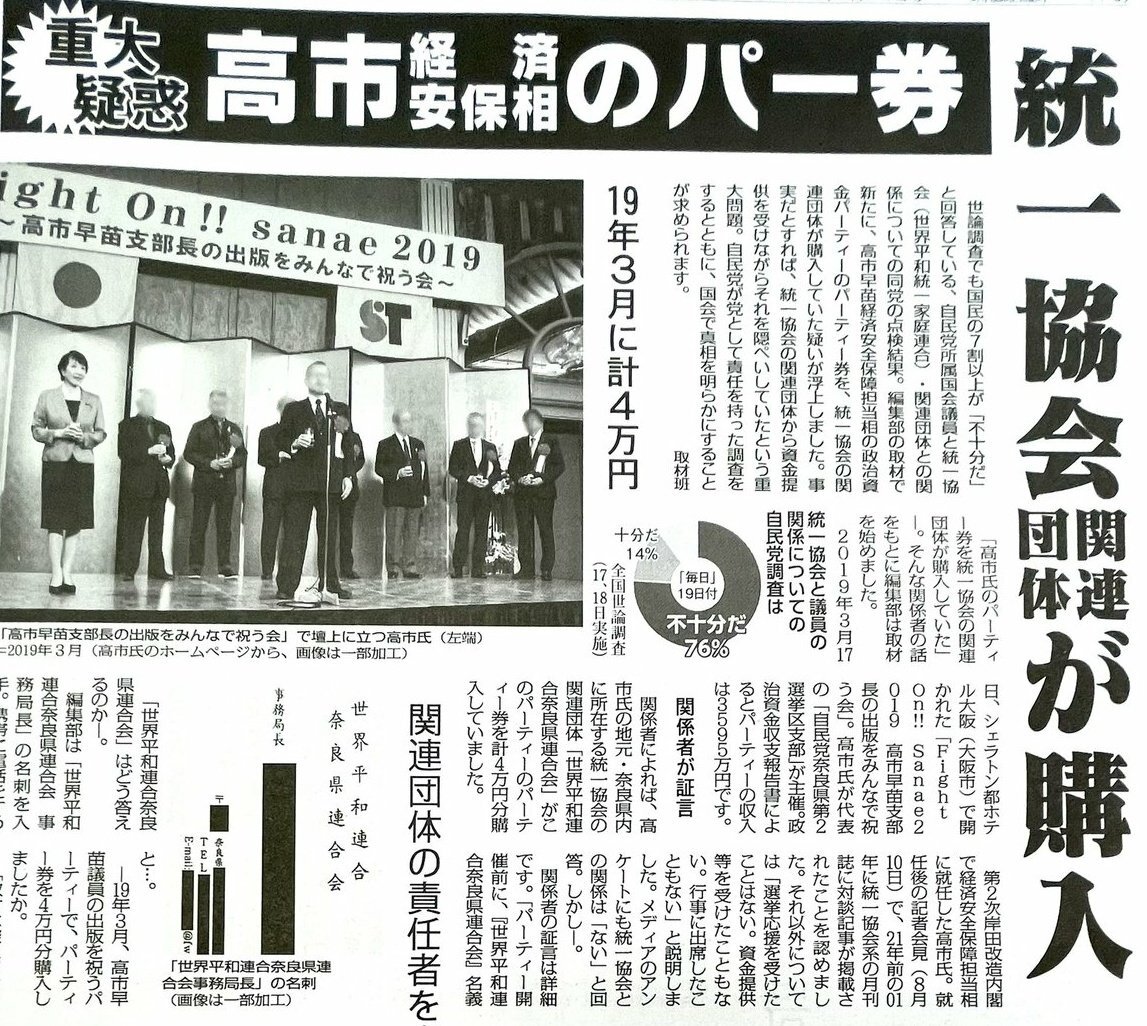 高市自身が統一教会(CIAの下部組織)から、パーティー券を買って貰っているのだから、高市自身がスパイ防止法で、逮捕されなければおかしいではないか? 高市などの統一教会の関係者が逮捕されないスパイ防止法に、いったい何の意味があるのでしょうか? #スパイ防止法賛成者はスパイと情弱 x.com/akatibarati/st…
