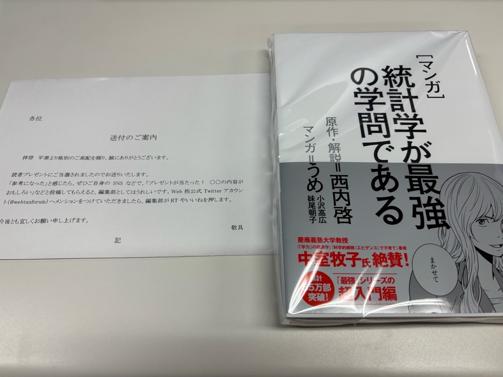 インプレス様のプレゼント企画に当選して『マンガ 統計学が最強の学問である』をいただきました🎁✨ マンガで統計学を楽しく学んで、仕事や生活に活かせそう😊 11/6(木)、11/7(金)開催の「Web担当者Forum ミーティング 2025 秋」(@webtanforum)にも参加します!🍁 #Web担当者Forum #web担 #webtan pic.x.com/Ahq6xJRFK3