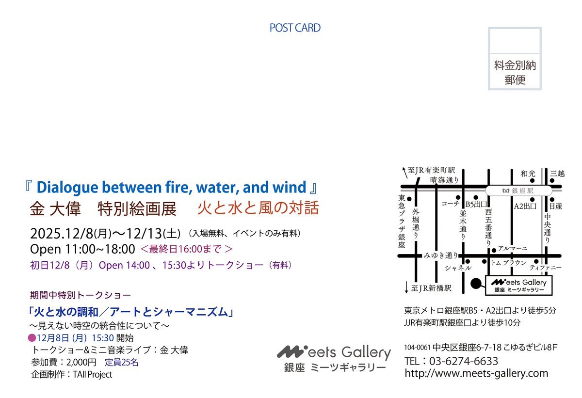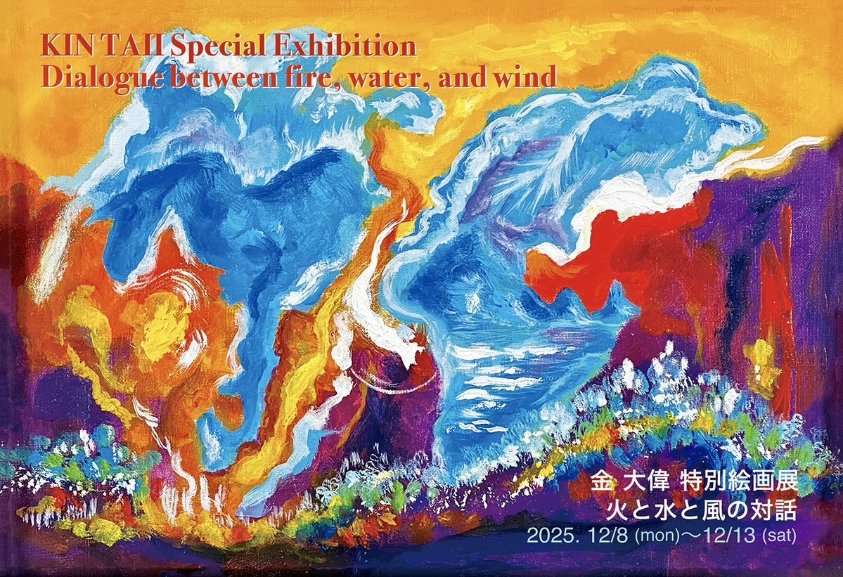 金 大偉 特別絵画展🖼️ “ 火と水と風の対話 ” Dialogue between fire, water, and wind 2025. 12/8 (月)〜12/13 (土)  初日にトークイベント&ミニライブ “ アートとシャーマニズム ”開催 🟪Meets Gallery/銀座 meets-gallery.com pic.x.com/6FW8EfmW68