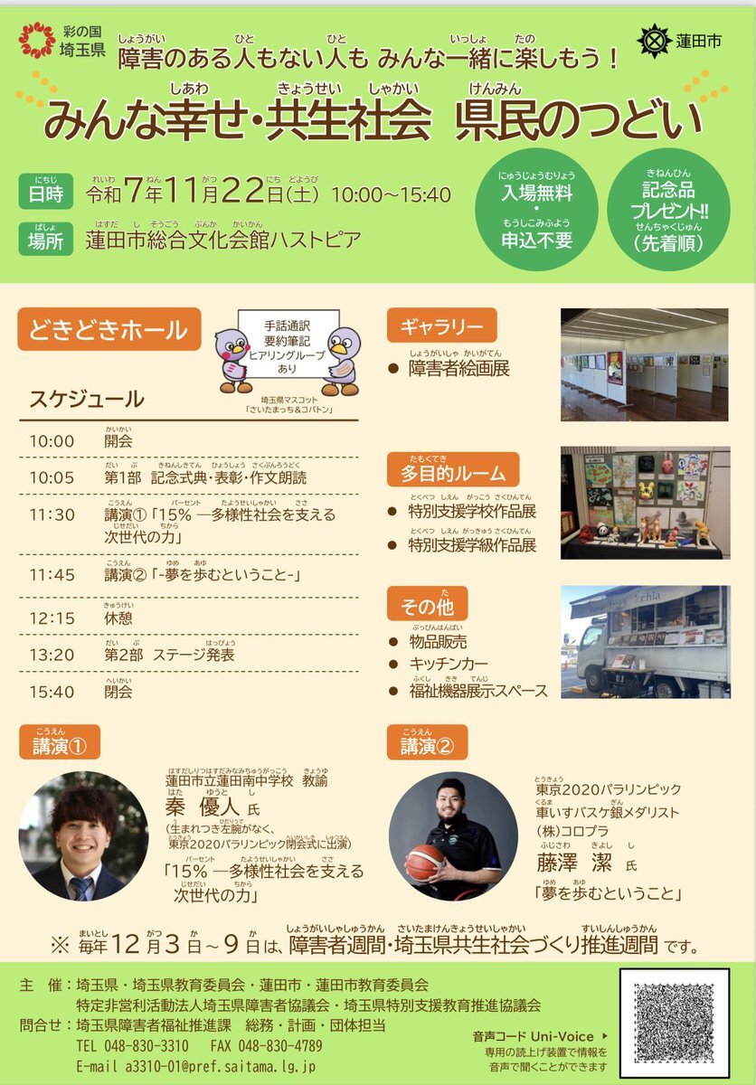 令和7年11月20日(木)晴 昨日は、ぷちとまとアートカフェをご利用頂き感謝♪ 本日も10:30〜16:00まで営業しております☕️ 今日は、みんな幸せ・共生社会 県民のつどい。障害者絵画展。ご利用者さんの作品を納品に行きます🚙 蓮田市総合文化会館ハストピア 11/22(土)ぜひ。 11/22は消費生活展も🍪 pic.x.com/yr3L7yfY9M