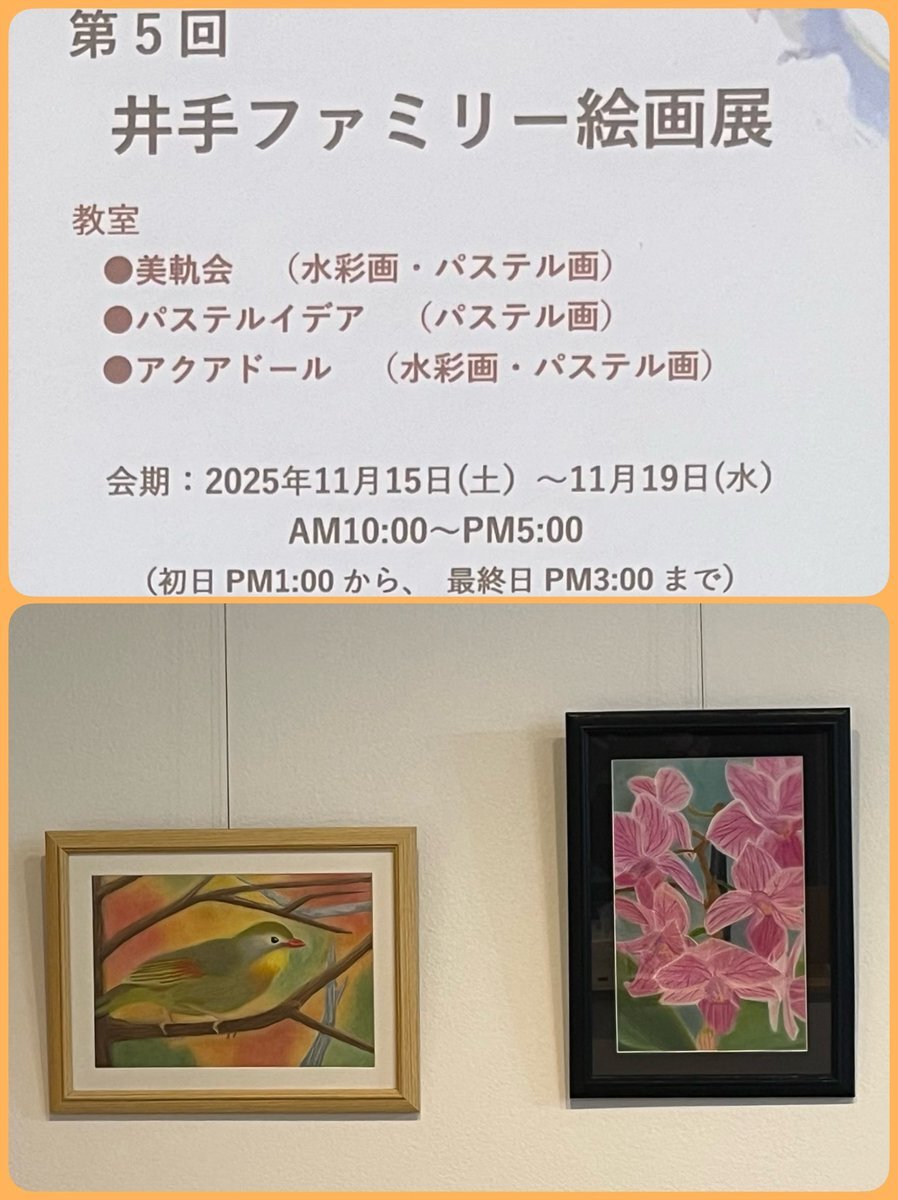 井手先生の絵画教室に通う人達の絵画展 会期内に150名もの方々が訪れ大盛況で終わりました。 次回は12月21日〜27日までの 全日本パステルアート連盟での展示会です。 リビングにピクチャーレールが幾つも設置されているので折角だから飾りました pic.x.com/CBXWIy9TjA