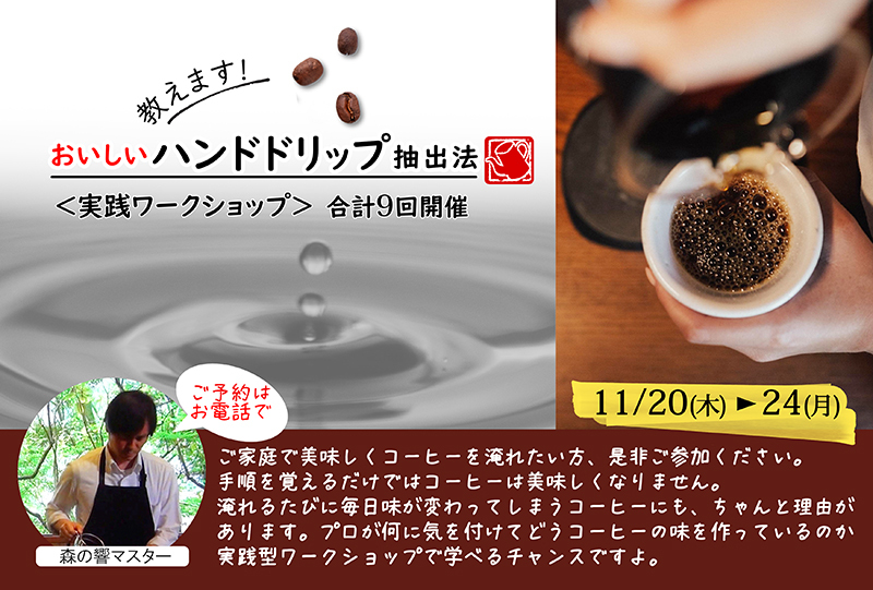 今回は二つのスペースで同時開催です A. 飯島ひろ子 絵画展 今回はアクリル画を展示です B.「おいしいハンドドリップ抽出法」 森の響マスター 余語和則 「美味しいコーヒーを淹れるためには」を お伝えするワークショップです 展示は11月24日(月)15時まで morinooto.jimdofree.com/%E3%82%AE%E3%8… pic.x.com/w4rjbvNujC