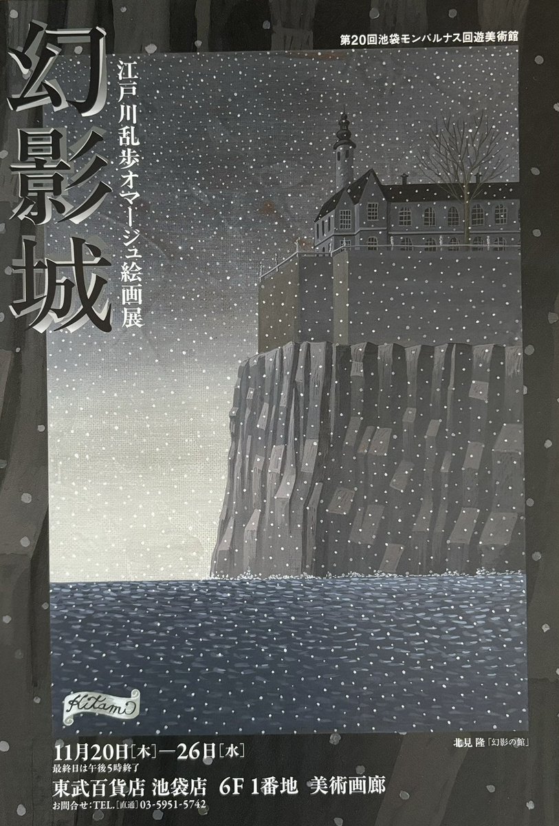 【江戸川乱歩オマージュ絵画展「幻影城」】 11月20日(木)〜26日(水) 東武百貨店池袋店6階「美術画廊」 🌘🏰🎭 今年も参加させていただきます。 毎年妖しくも惹きつけられる作品が並びますのでお立ち寄りいただけると幸いです。 図録は毎回あっという間になくなるのでお早めに📕 #池袋東武