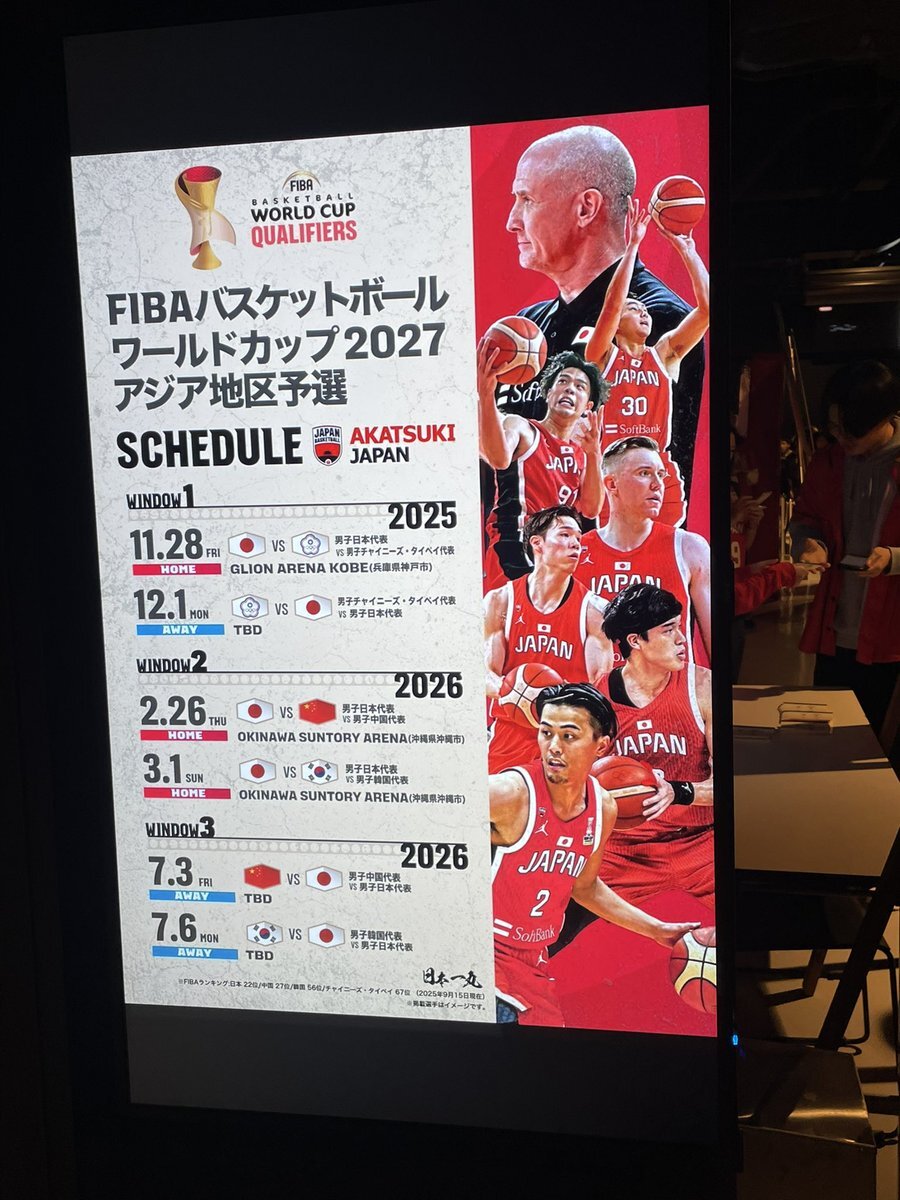 🏀ワールドカップ2027アジアンクオリファイ@ジーライオンアリーナ神戸。"絶対に負けられない戦い"シングル観戦but試合が始まるとバスケ好き🏀の血が騒ぐ。復帰の渡邊雄太、富永啓生、久々の代表PGスタメンの齊藤拓実らが活躍で快勝。地元神戸の代表戦、めっちゃ楽しみました😆 pic.x.com/KH7Lcvikr9