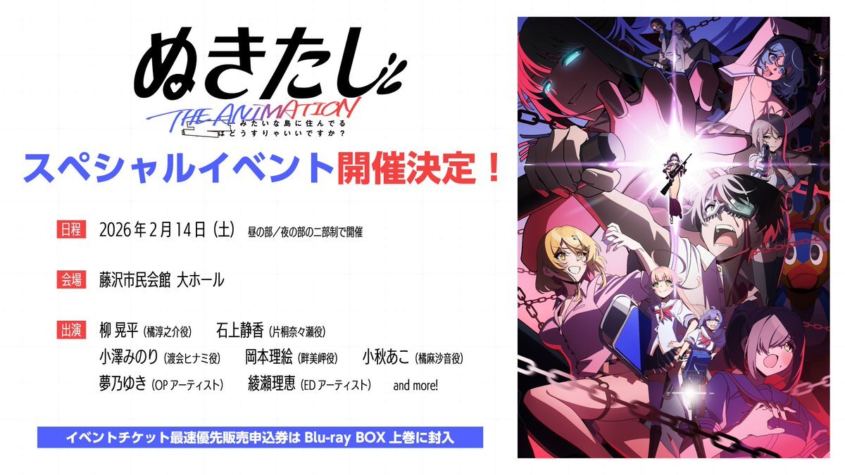 『ぬきたし THE ANIMATION』 ノンクレジットエンディング公開‼ 昨日放送となったエンディング映像! ノンクレジット版を公開いたしました✨ youtu.be/J8YZhx86wdU エンディングテーマ「再会系女子はどうすりゃいいですか?」 歌:綾瀬理恵 作詞:えびかれー伯爵 作曲:えびかれー伯爵 #ぬきアニ pic.x.com/h4rleub9DB