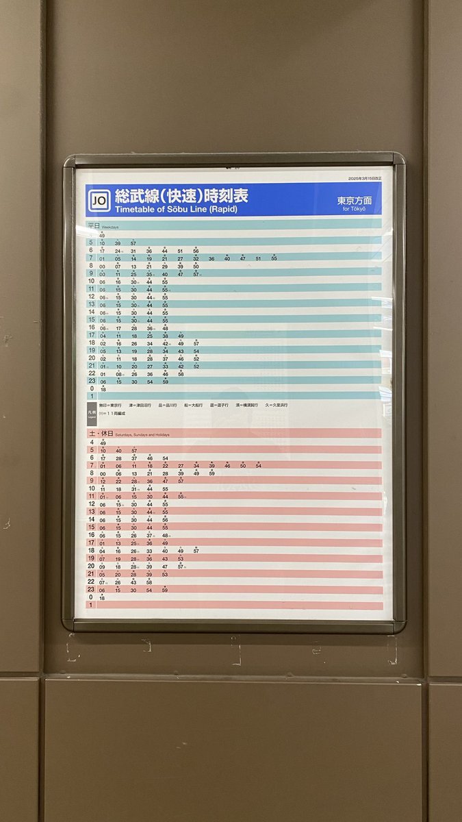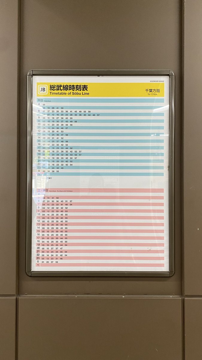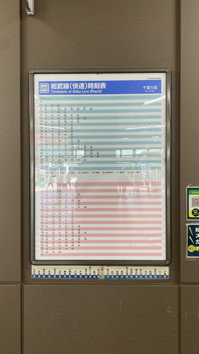 JR東日本中央・総武線各駅停車・総武線快速 稲毛駅 (時刻表掲示板) pic.x.com/00QyI15ciC