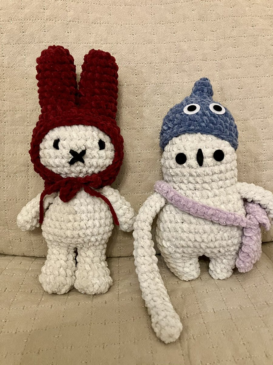 かぎ針で、ミッフィーちゃんを作りました! お洋服も作ってやれよぉ🫠って思うんだけど、編み図の見方がよく分からんのよねぇ😇解読するまで待ってて欲しい🫠 ヨッチと友達みたいでいいじゃんね笑笑 instagram.com/p/DGsJB0gPCw1/… pic.x.com/GpKXEg2muG