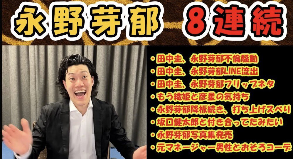 田中圭永野芽郁不倫騒動 田中圭永野芽郁LINE流出 田中圭永野芽郁フリップネタ もう織姫と彦星の気持ち 永野芽郁降板続き、打ち上げスベり 坂口健太郎、永野芽郁と付き合ってたみたい 永野芽郁写真集発売 ↓NEW↓ 元マネージャーとおそろコーデ youtu.be/wkGlz4ipht8?si… pic.x.com/5JP8jg8xIl