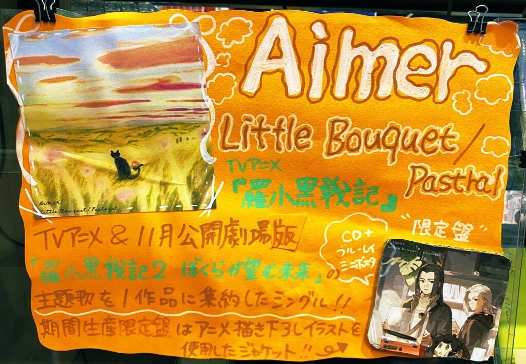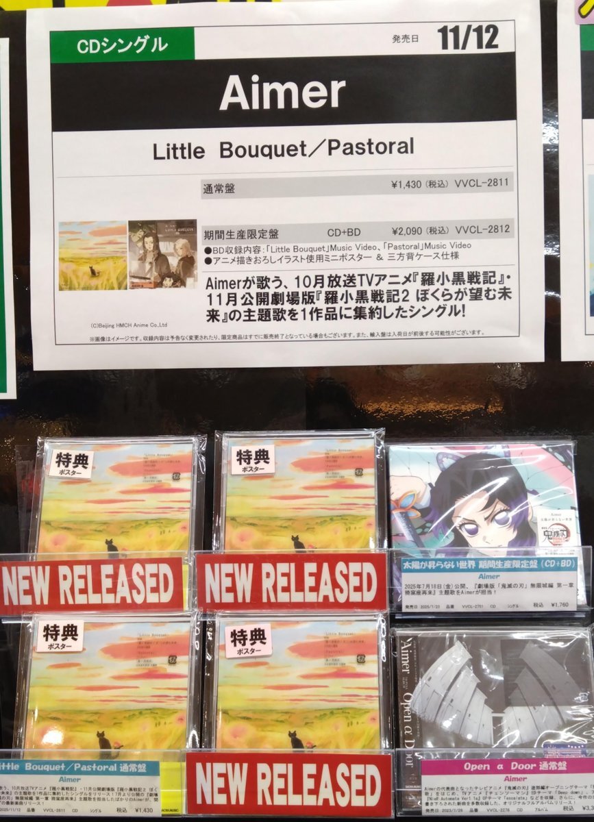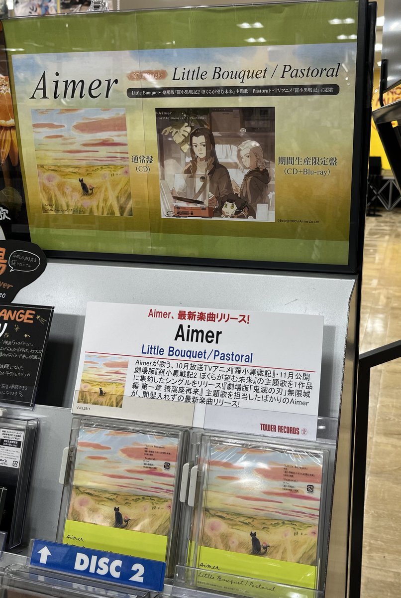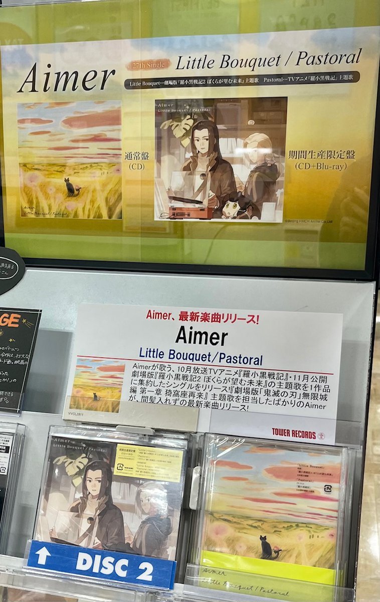【Aimer】 Aimer、ニューシングル『Little Bouquet / Pastoral』入荷しました💿✨ Aimerが歌う、10月放送TVアニメ「羅小黒戦記」・11月公開劇場版「羅小黒戦記2 ぼくらが望む未来」の主題歌を1作品へ集約したシングル! #Aimer #LittleBouquet #Pastoral #羅小黒戦記 pic.x.com/jd4ZPkRbO2