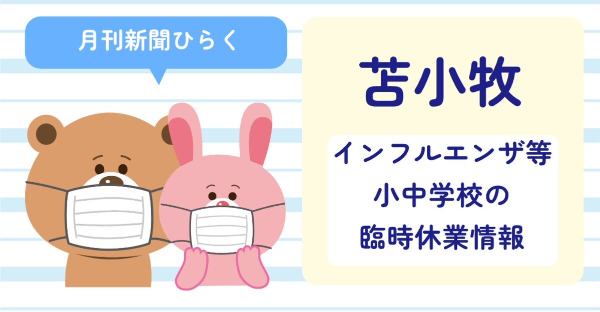 苫小牧市教委は10月30日、インフルエンザ・風邪症状により 和光中学校1学級で10月30日~11月2日 美園小学校1学級で10月31日~11月3日 学級閉鎖になったと公表。 なお閉鎖期間は感染状況により変更になることがあるということです。 インフルエンザの流行時期です。気を付けて過ごしましょう。 pic.x.com/BrloNdZYh7