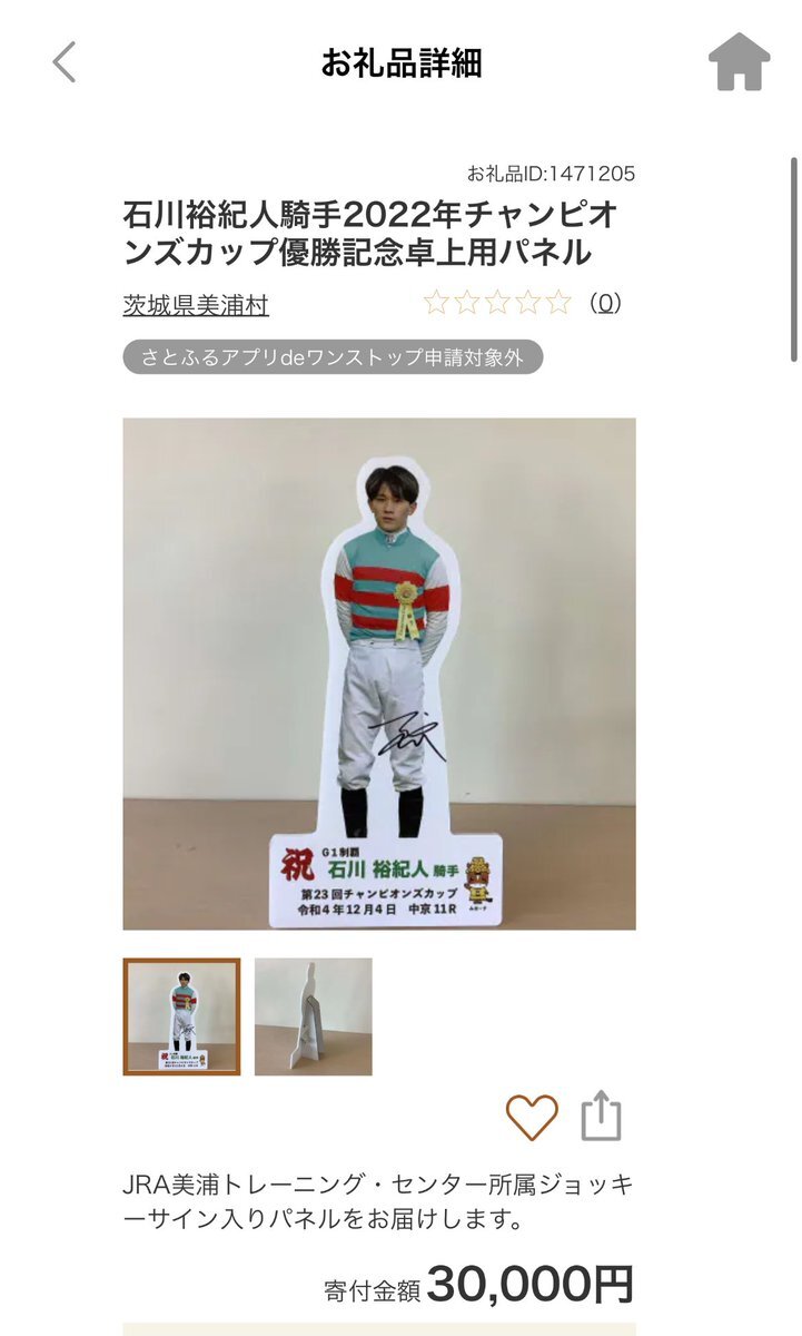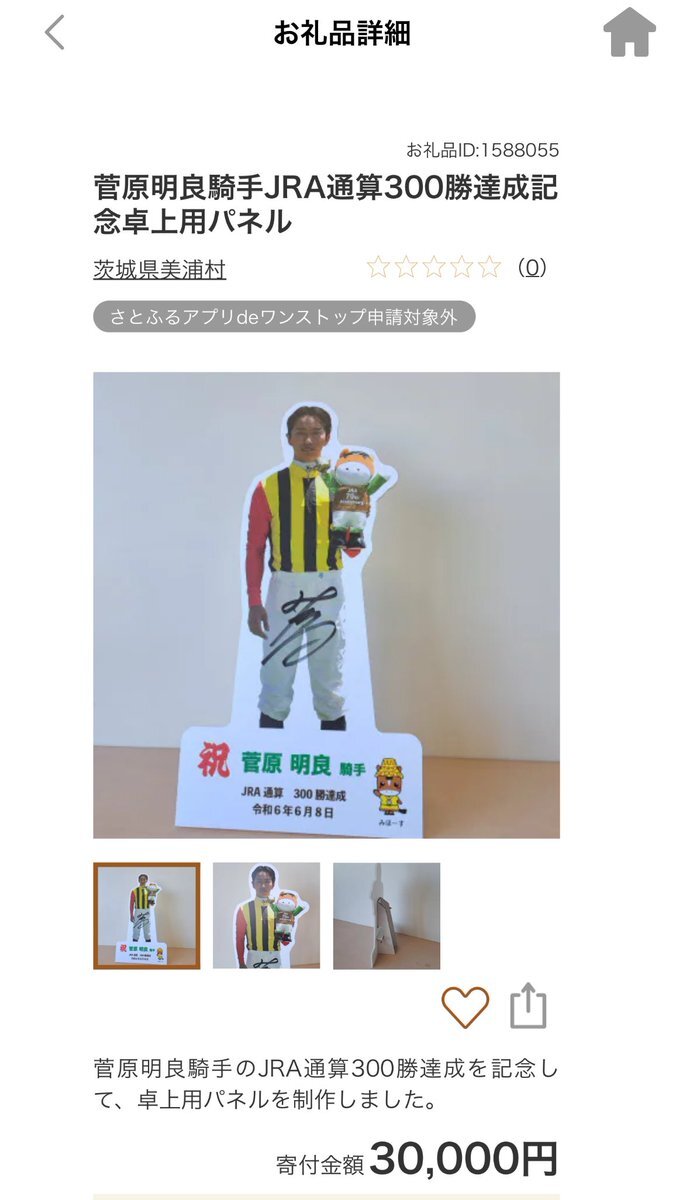 美浦村ふるさと納税めっちゃいいね もう枠が無いよ🥹 さとふる検索してたらJRA記念パネルサイン入りがちょくちょく出てていいなぁ 今は菅原明良騎手と石川裕紀人騎手が出てる👀 デカパネルかと一瞬思ったけど卓上の文字に安心🫢 pic.x.com/gfjCeskTOf