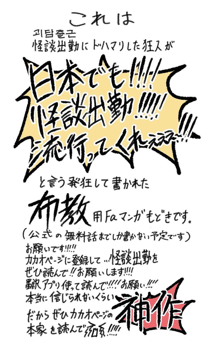 ちなみに!!!!!!!! 【怪談出勤】と言う作品さんですが、 韓国の小説なんですが!!!!!!!! この垢で1話と2話が日本語のFAコミカライズが載っているので!!!!!!!!!! ぜひ【怪談出勤】気になっているからチラッと覗いてみて……そんでこの垢の動画に【簡単日本語自動翻訳機能】の使い方が載っているのでッ x.com/ssakanakawa/st…