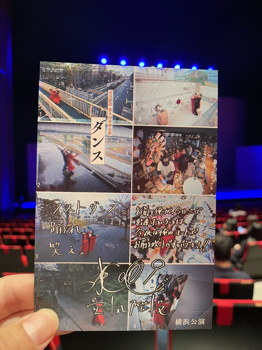 空気階段第8回単独ライブ「ダンス」を観ました。もぐらさん人工股関節手術後の舞台で、横浜の神奈川芸術劇場にて。 心と身体が踊るようなネタで、最後の長尺コントは、SFっぽくて、本当に凄かった。 映像を多用してました。バカバカしさも残しつつ、何処となくハートフルな感じで良かったです👏 pic.x.com/sqrlz1obIB