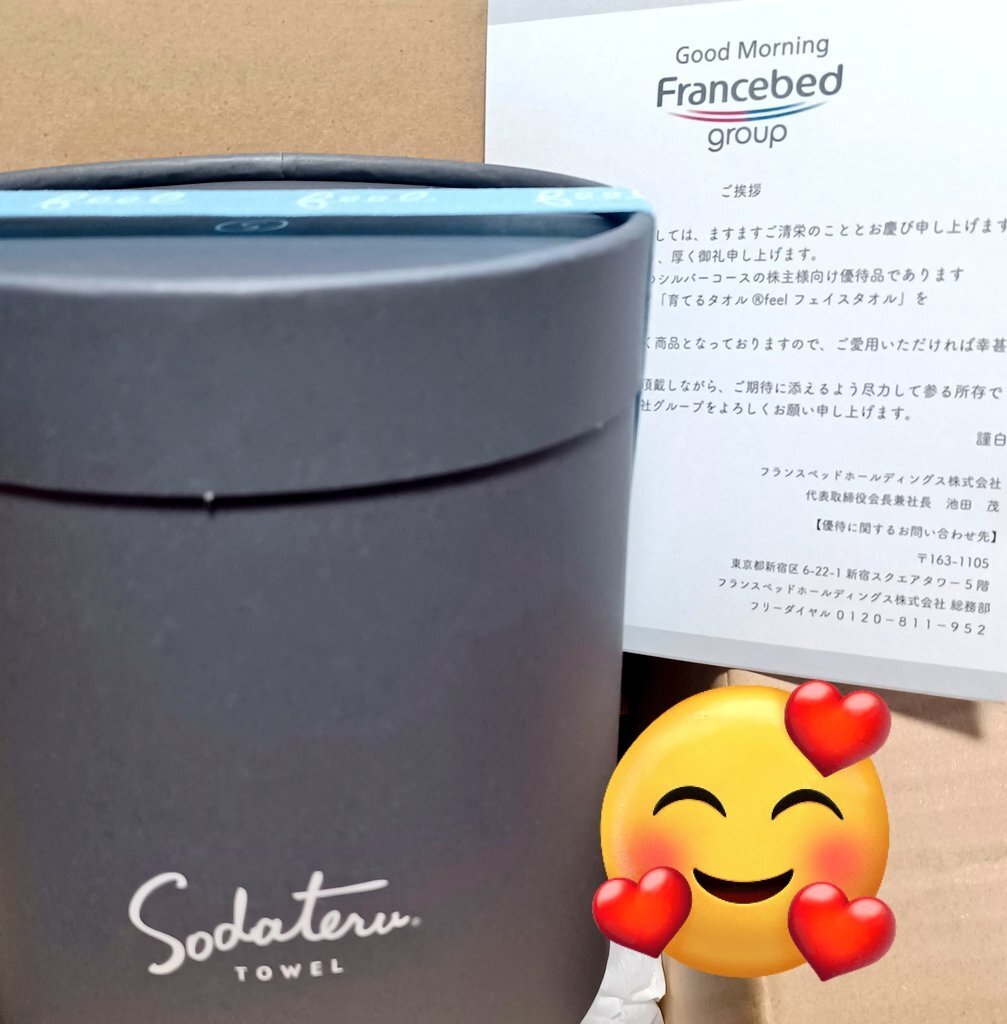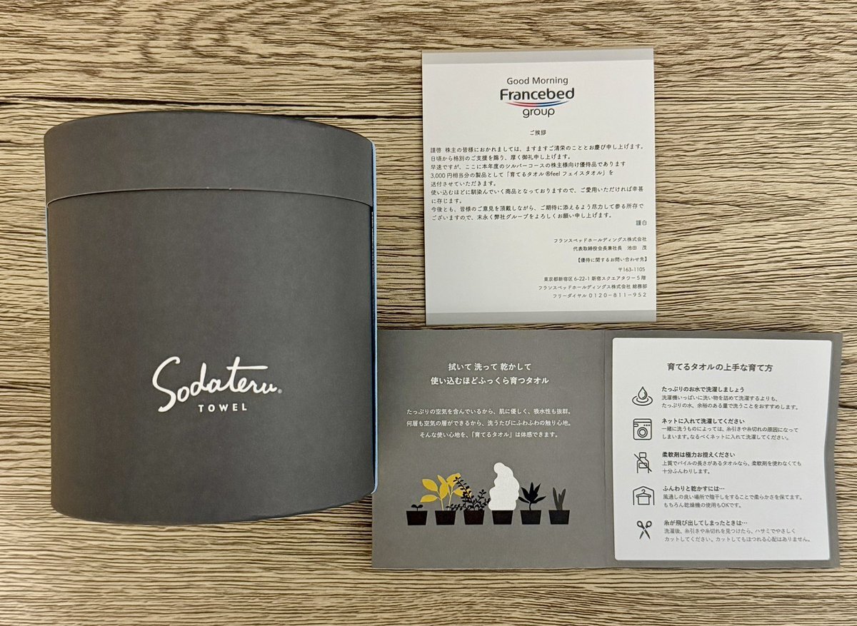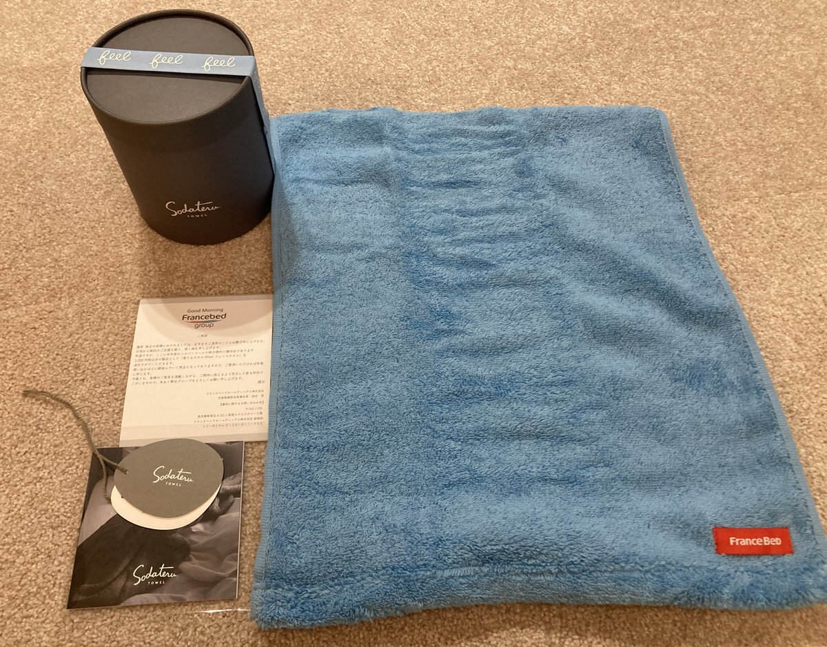 株主優待で1番楽しみにしてたと言っても過言ではないフランスベッドの育てるタオルが届きました🎁 しっかり育てて全国のフランスベッドタオルトレーナー達に戦いを挑み憧れのタオルマスターにオレはなる‼️ pic.x.com/0UpqwFpJP6