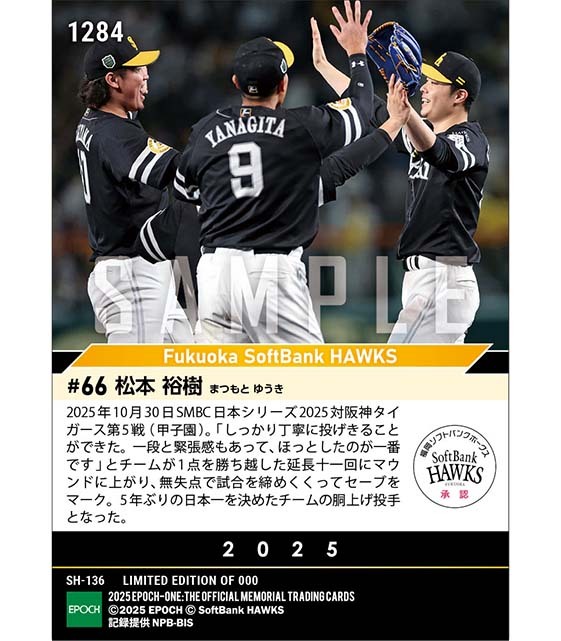 ■EPOCH-ONE■⚾️✨ #福岡ソフトバンクホークス #SMBC日本シリーズ2025 【#松本裕樹】 試合を締めくくって胴上げ投手✨✨ 1枚¥500(送料無料) #メモリアルカード 11/13(木)18時~72時間限定受注販売開始! epoch-card.com/shop/r/r1012/ #エポックワン #プロ野球 #ホークス #福岡ソフトバンク #sbhawks pic.x.com/gYQH2tRrFY