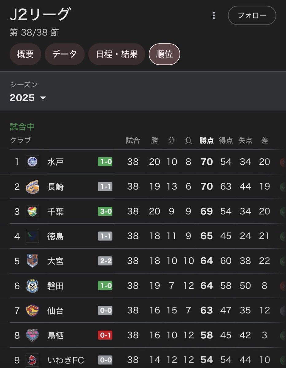 水戸ホーリーホック「J2優勝&J1昇格!」🎉⚽️ 前引けまでは危なかった💦 ⇒長崎と千葉がJ1自動昇格圏内😣 後場、開始1分で水戸がゴールを決めホッとした👍️ 👉️首位の長崎が同点で終わり、水戸がJ2初優勝🎉 pic.x.com/LdTo4bx9BU