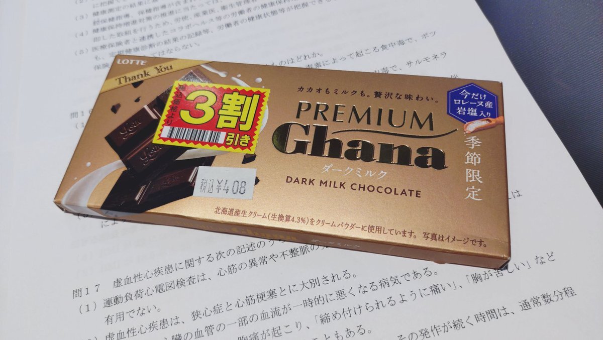 第二種衛生管理者試験当日!過去問メインに追い込み中! 前日でやーっと食中毒項目が覚えれたので、解ける問題が出ることをあとは祈ります! 勉強のお供は、3割引きとはいえ、高いプレミアムガーナ。甘い。ちょっとしょっぱい。 pic.x.com/JxmseqiRhN