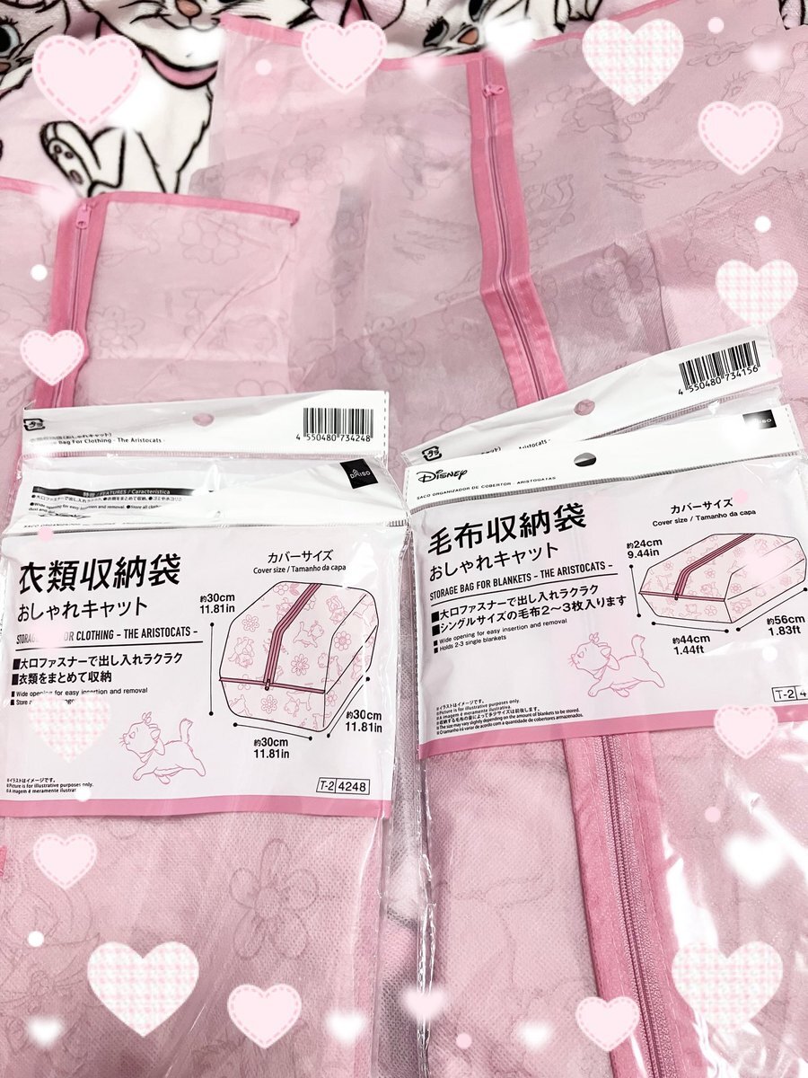 マリーちゃん、ベルトゥルのおしゃれキャット3兄妹の毛布、衣類収納袋🐱🎀🎹🎨 以前載せた毛布それぞれ入れたらぴったり🛏️ 今まで100均の白の収納袋20個ぐらい使ってたけど全部大大大好きなマリーちゃんのピンクのに変えられるなんて夢みたい🥹🩷❤️💙 #ディズニーマリー #おしゃれキャット #ダイソー pic.x.com/nDyl9Ur0RO x.com/jpmarieprinces…