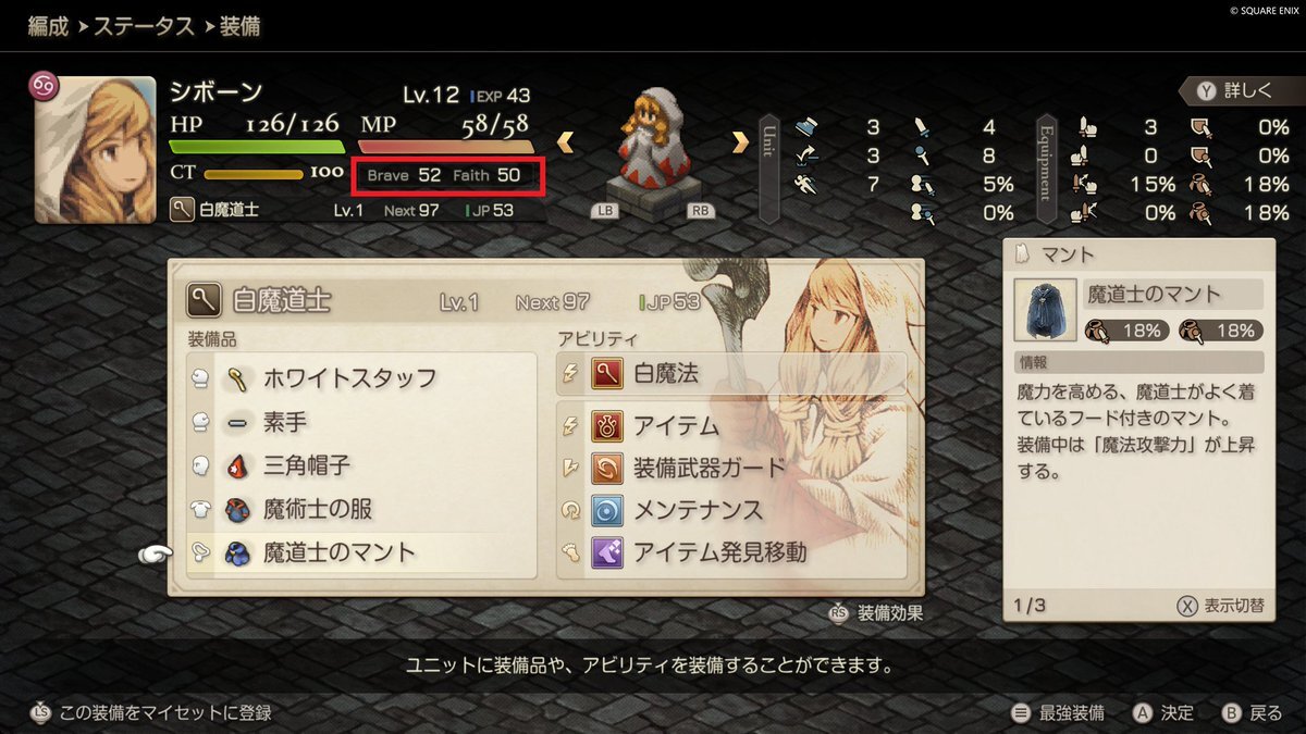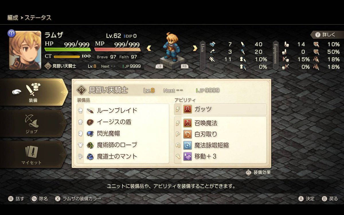 FFT 実はラムザの見習い戦士(天騎士)は全体的に成長が良いので、これだけでも結構パラメータ伸びるのだ。 これはPS時代からそう。 #FFTイヴァリースクロニクルズ pic.x.com/O4EJA2chW7