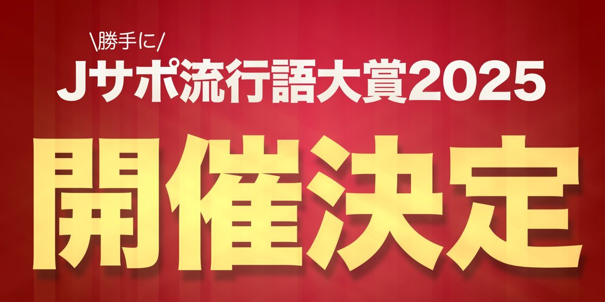 #Jサポ流行語大賞2025 開催決定🎉 昨年(勝手に)開催した企画が大きな反響を呼び、今年も開催する運びになりました! 今年も長かったJリーグも佳境を迎えています。そんな中で、流行った言葉や新しく生まれた言葉をランキング形式で振り返りましょう!応募期間は11月中(予定)です。リプ待ってます!