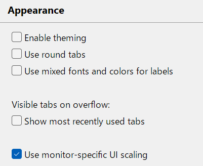 Eclipseは設定画面UI scalingを設定できるけど、フォントのサイズがおかしくなる 設定をオフにして -Dswt.enable.autoScale=true -Dswt.autoScale=exact -Dswt.autoScale.method=nearest をeclipse.iniに指定すると良い感じ pic.x.com/VAAa4SqdRb