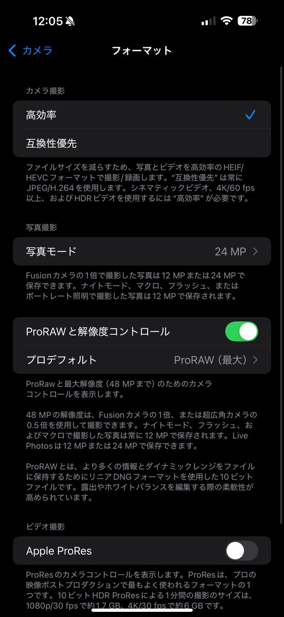 返信先:@Oh_am_m15だとUi違うかもですが16は設定画面こんなのです、RAWで検索するとすぐ辿り着けます。Lightroomと課金版アイビスでAppleRAWから現像できます(個人的にフォトショより課金版アイビスのが優秀と感じる、操作性などで。しかもPNG保存できるからupで劣化しない…)カメラ画面でオンオフできます(3枚目) pic.x.com/YeP2NanKYY