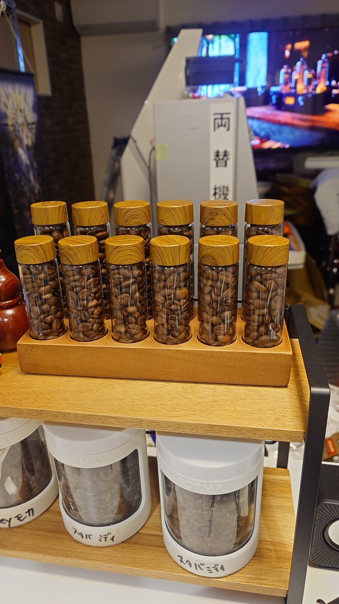 珈琲豆の小分け完了(∩´∀`)∩ワーイ 何気にこの試験管立てみたいなの役立ってる。 朝の急いでる時に1回分の豆の量を サッと取り出せるのは有り難い。 仕事中も熱々が飲みたいので 魔法瓶に入れて持ち歩いてる。 pic.x.com/03Spq0nYPI