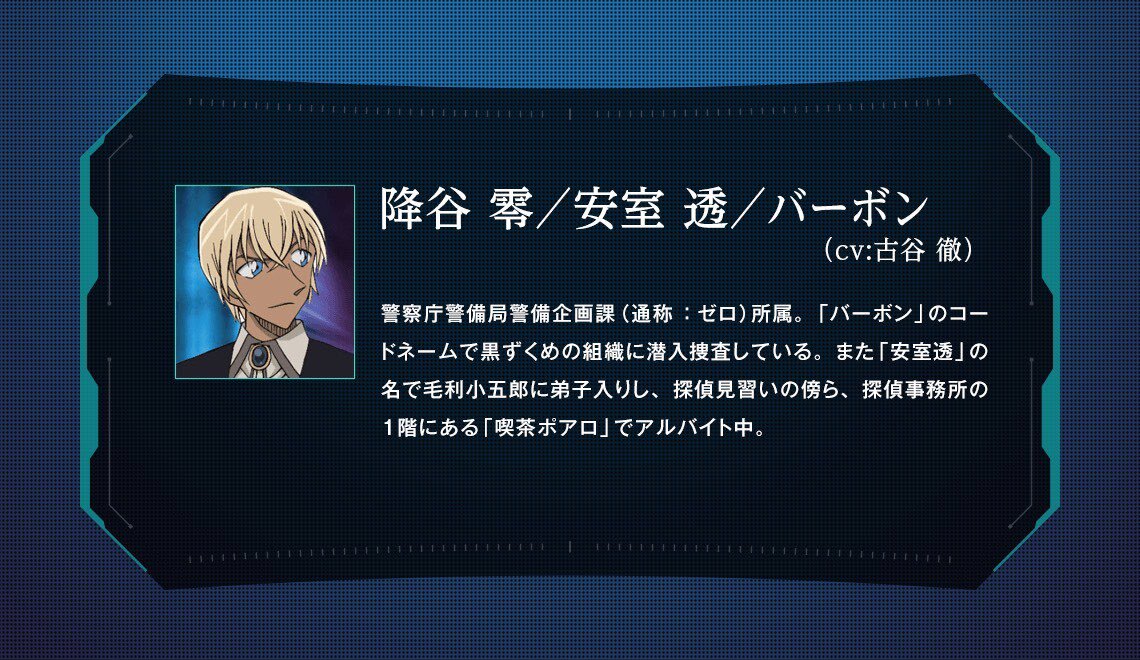 アニメ名探偵コナン #警察学校編 放送決定!! 劇場版にも登場する 警察学校組とは? 気になる人物をここで紹介! 【 降谷 零 】 アニメ放送後のよる7時からは、 ・YouTubeでプレミア配信 ・Huluでライブ配信 を行います! #劇場版名探偵コナン #ハロウィンの花嫁 #降谷零 pic.x.com/BiLEFER4Sl