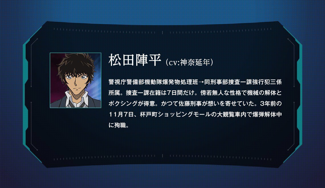 アニメ名探偵コナン #警察学校編 放送決定! 劇場版にも登場する 警察学校組とは? 気になる人物をここで紹介! 【 松田 陣平 】 第1弾「警察学校編 Wild Police Story CASE.松田陣平」の放送は本日よる6時から! #劇場版名探偵コナン #ハロウィンの花嫁 #松田陣平 pic.x.com/cei4x3euoT