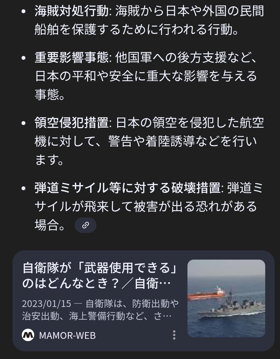 警察官職務執行法7条は正当防衛、緊急避難、重犯罪者の場合に限り警察官の武器使用を認めるが、同法が自衛隊をも呪縛している❗️軍隊に準ずる中国海警船の侵略行為に対抗するに当っては、それが自衛官許りか国民の生命をも危機に晒すものだ❗️ 早急にこの警職法の縛りを解くべく自衛隊法を改正すべし❗️ x.com/edanoyukio0531…