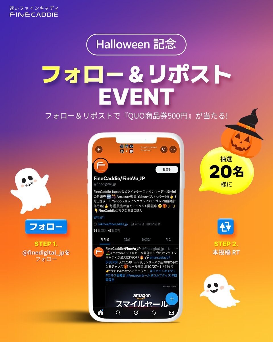 FineCaddie/FineVu_JP @finedigital_jp 様の Holloween記念フォロー&リポストEVENTに当選し QUOカードPay 500円分をいただきました🍀 ありがとうございます💚 FineCaddieは ゴルフレーザー距離計測器です ファインキャディJ9miniが新発売⛳✨ pic.x.com/sAK8hlr2y3